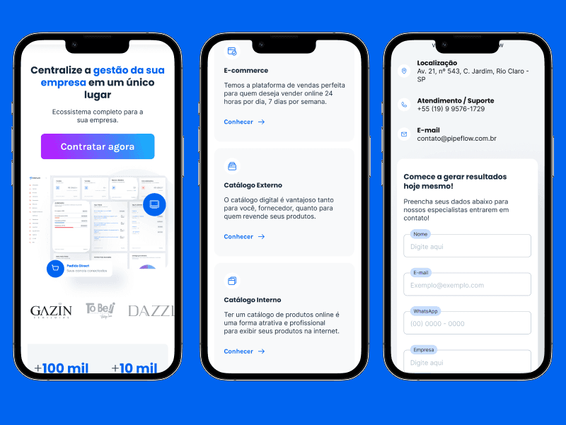 Formulário destacado: Nas páginas internas sobre os módulos do Pipeflow, o formulário ganhou destaque com o objetivo de gerar mais leads.